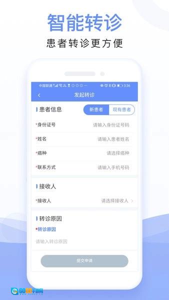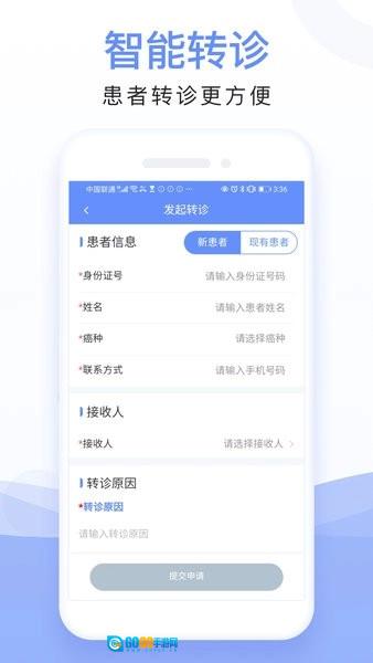 是提供给湖南省专病联盟的医生使用的移动客户端产品,医生可以通过该产品方便快捷进行上下级转诊,研究癌症治疗数据,提升癌症治疗规范。是一款专为肿瘤疾病医生设计的助手,是专业好用的医生线上管理服务平台,方便医护人员高效整理患者信息,查看详细的排班内容,高效处理各项医疗工作。可以随时选择不同类型的肿瘤进行管理,拥有全程管理和患者管理。