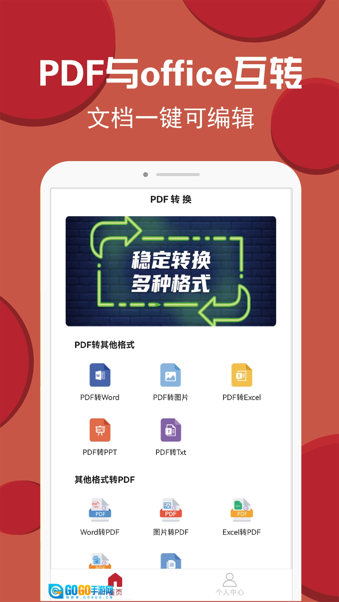 1、强大的PDF转换器阅读器,可以快速将PDF文档转换成word文档、ppt和txt等格式。