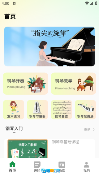 2、首页会推送各类丰富的学习资料,能支持钢琴演奏、发声练习等多种学习需求。