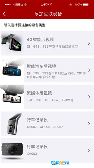 2、在选择设备页面点击行车记录仪按钮