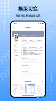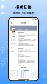 1、这是一款多种简历模板的应用程序,借助它您能轻松完成简历的制作。