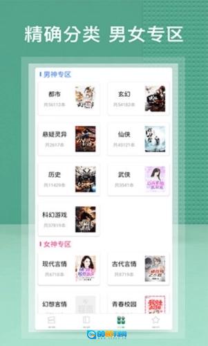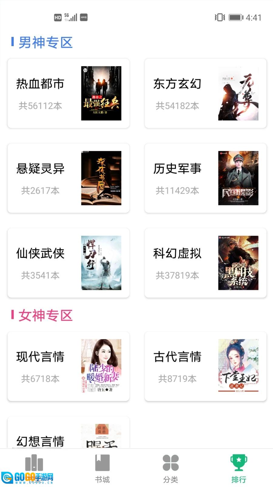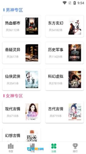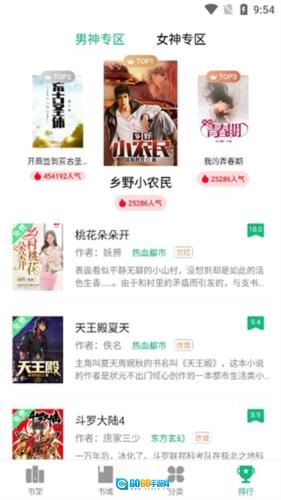 4、排行榜内的书籍还划分有男神专区与女神专区,便于用户查找;