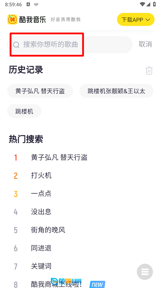 3、如图所示,输入歌曲名称或者关键词,就能搜索到自己喜欢的歌曲。