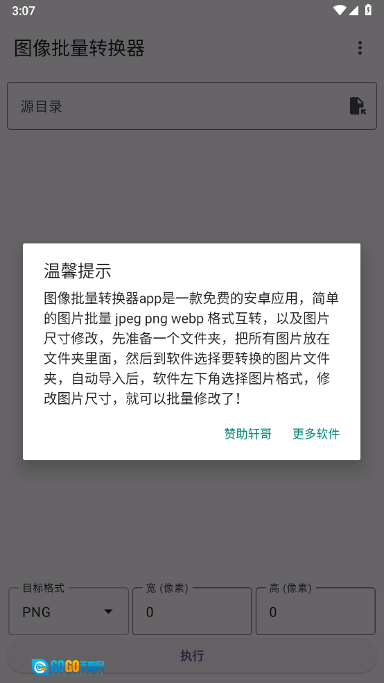 图像批量转换器是一款免费安卓应用,能轻松实现图片批量格式互转(支持JPEG、PNG、WebP三种格式)与尺寸修改,还可自定义目标文件夹,方便你批量处理手机中的图片。