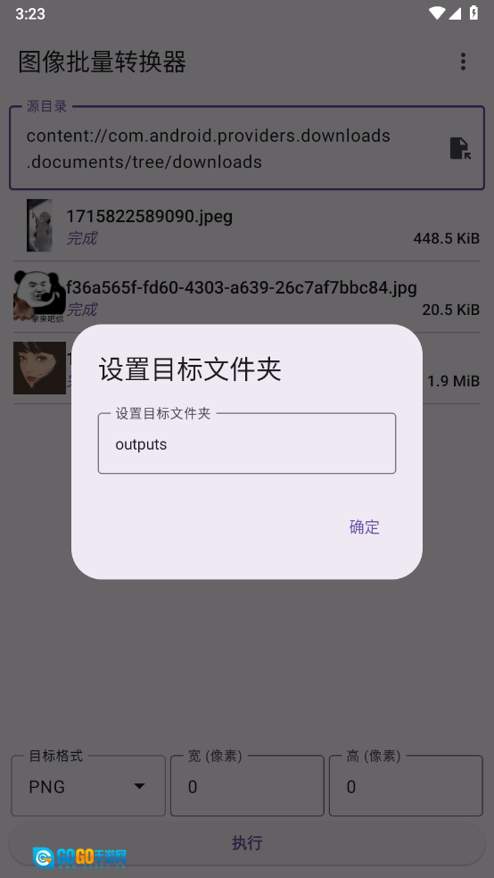 3、只需填写目标文件的名称,后续处理好的图片就能保存在此处。