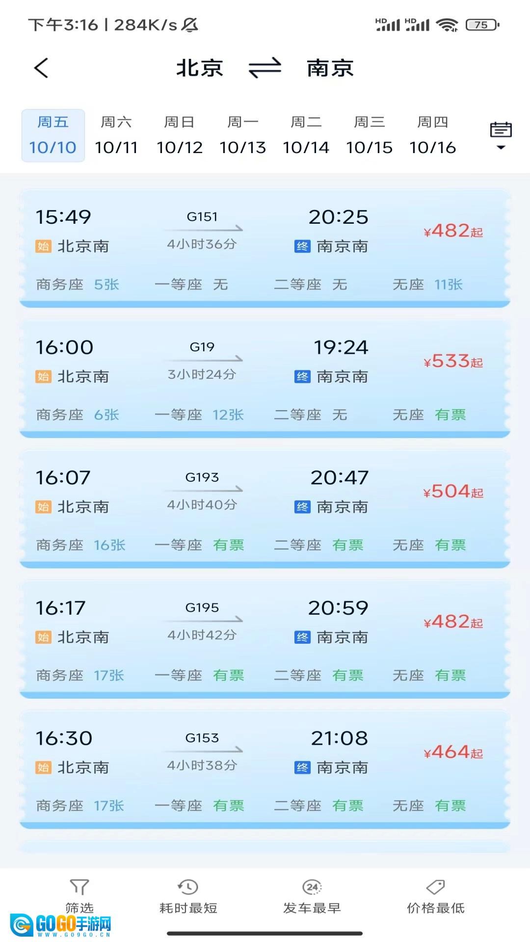 3、在软件主界面选择高铁查询功能,输入出发地和目的地,系统会自动显示相关的车次和票务信息。