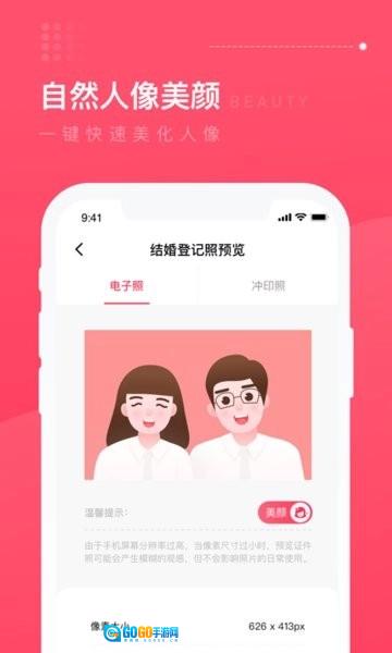 结婚登记照,用户通过这一款功能齐全且实用的软件,再也不用出门去拍结婚证件照,在家用手机就能够拍出自己满意的照片,节省了用户的时间和精力。同时,软件还支持在线制作结婚证件照,让用户的结婚证件照更加的好看。