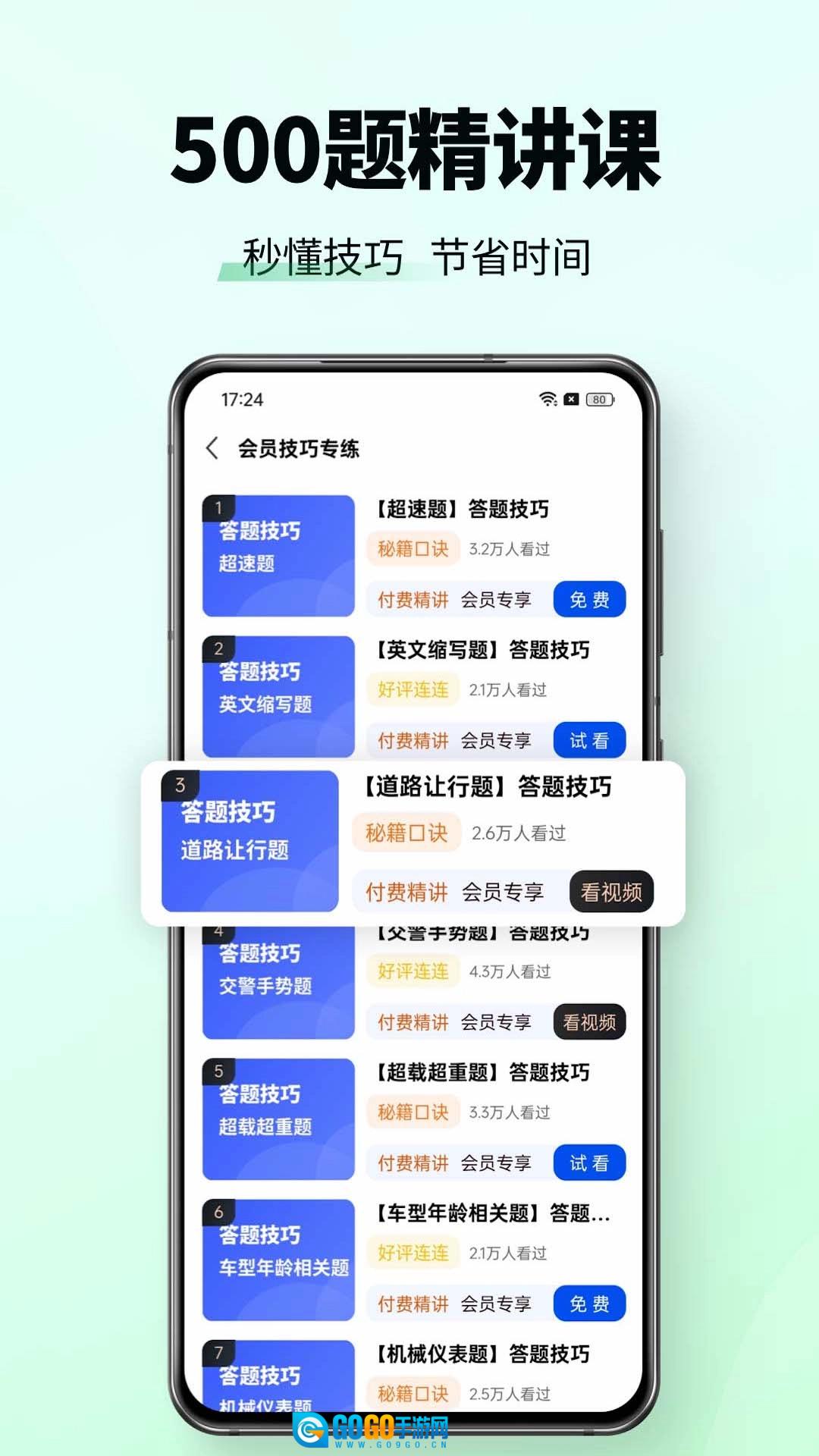 驾校考试科目一符合2025年驾考新规,想要报考驾驶证考试,您可以先搜索自己喜欢的驾校,每一个驾校的学费都不一样哦!有的能够省钱。这里的题库非常多样化,精选的500道题目都是在考试中经常出错或者遇到的题目。