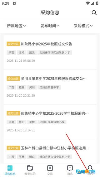 1、进入采购信息页面后,点击底部的“我的”选项,即可进入个人中心页面。