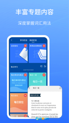 外研社法语大词典还获得了教育部与国家语委的联合推荐,这表明该软件能助力用户更深入地理解与学习中华文化术语——用户可借助软件解读这些术语,进而提升自身的学习成效。在特色板块上,词典设有真人发音和法语相关专栏:真人发音功能有助于用户精准掌握法语发音;法语专栏则覆盖天气、时间、购物、交通等各类常见主题,不仅提供地道的口语发音指导,还配备录音自查功能,帮助学习者练就流利法语。