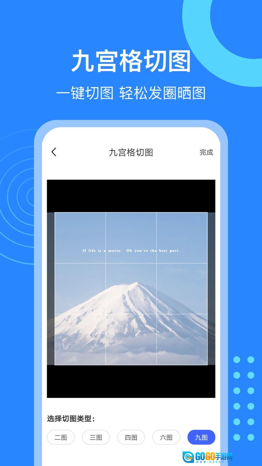 3、把图片分割成九宫格样式,以此丰富社交媒体的发布内容,同时识别出的文字能够保存到本地,作为历史记录留存。