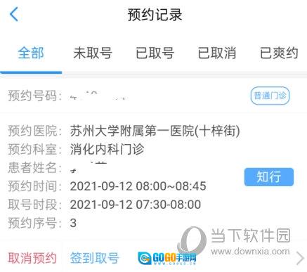 1、在首页点击【签到取号】按钮,就能查看当天的预约挂号记录。
