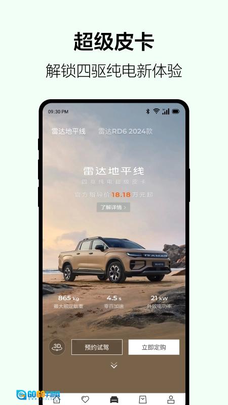 3.爱车:了解雷达新能源汽车核心技术亮点,个性化配置并定购爱车,一键省心预约试驾。