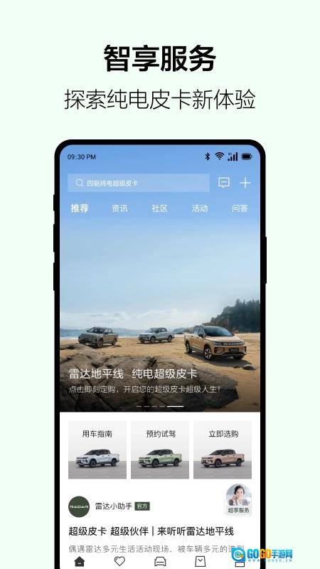 1.资讯:全面了解雷达新能源汽车动态及车主用车体验,获取实用的用车、购车指南。