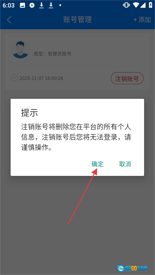 4、在提示弹窗里,点击【确定】按钮,就能提交账号注销申请了。