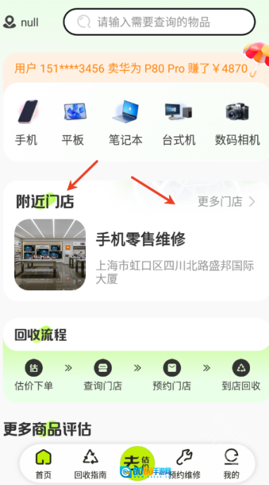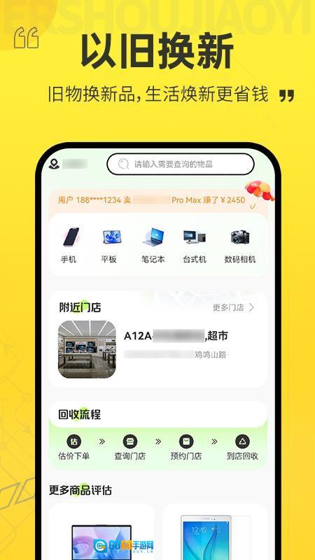 以旧换新查询是一款能让闲置物品重获价值的二手回收估价工具,支持手机、平板、笔记本、台式机、数码相机等多种电子产品类型,用户可一键查询其当前回收价格。该平台的回收流程十分简便,只需经过估价下单、查询门店、预约门店、到店回收这四个步骤即可完成操作。