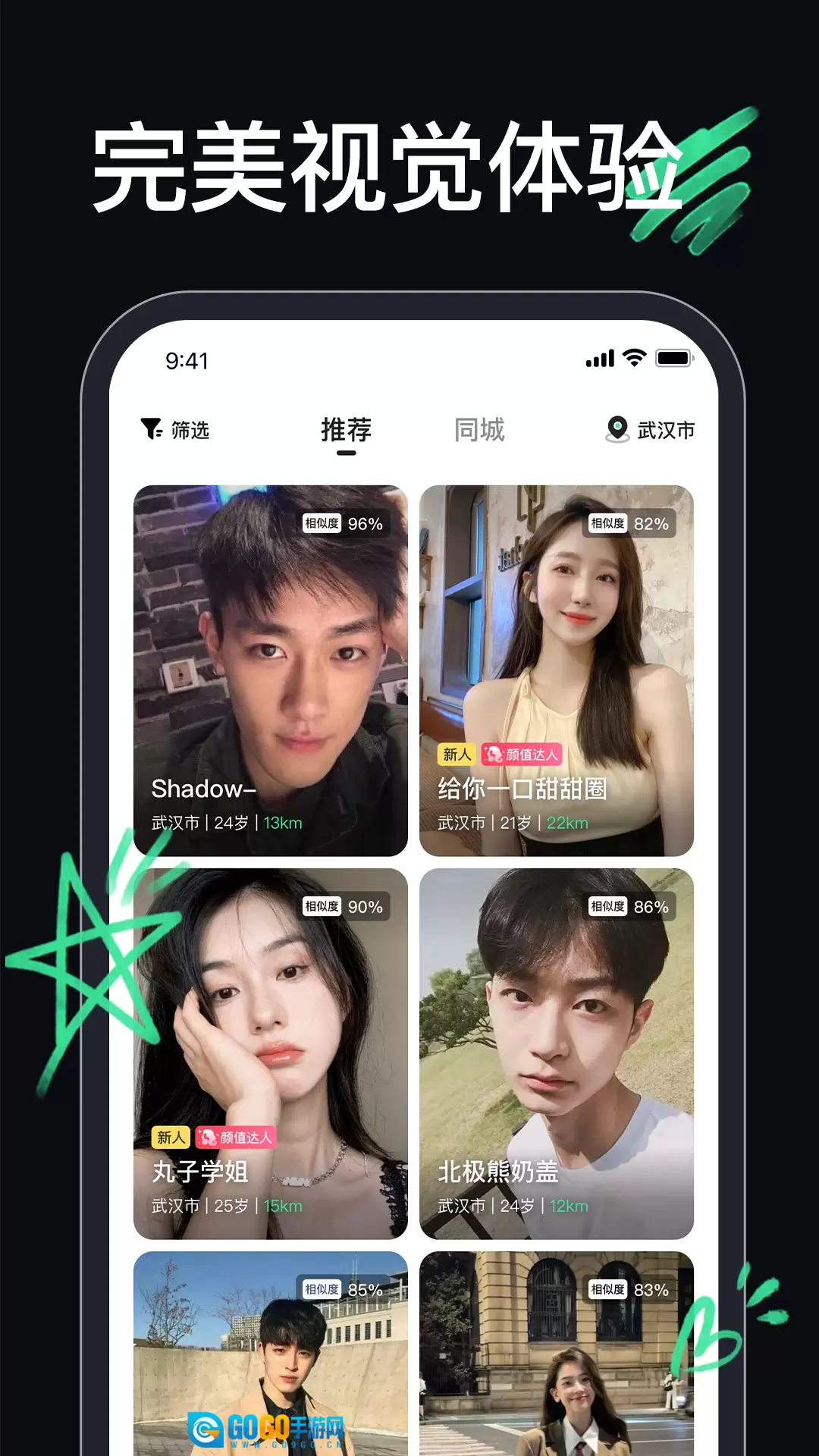 顶颜软件汇聚了大量高颜值的俊男靓女,带来的视觉体验十分舒适。平台上的所有用户均通过真人认证,身份信息真实可信,完全不必担心遭遇欺诈。系统还会依据你的地理位置和兴趣偏好,为你推荐匹配度高的用户,助力你快速邂逅与自己合得来的另一半!