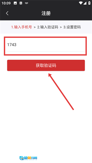 4、进入注册页面后,先输入手机号码,接着点击【获取验证码】按钮,再继续完成后续的注册步骤。