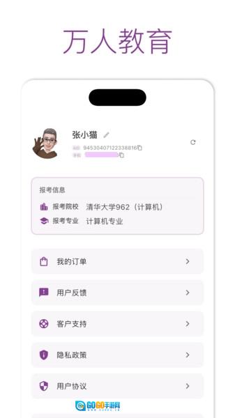 万人教育是一款相当专业且安全的考研知识学习平台,其学习资料十分全面,大体能够满足各类考研人员的需求。初次使用的用户可以定制契合自身的学习计划,以便按照计划进行学习。平台配备名师在线授课,支持视频学习与刷题训练等功能,因而深受众多考生的信赖。