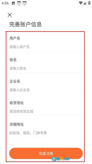 3、进入完善账户信息页面,填写所需信息后点击完成注册按钮,即可完成账号注册流程。
