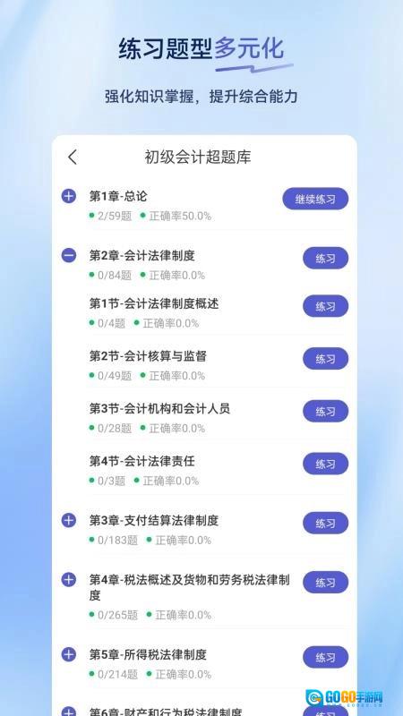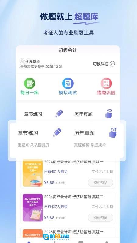初级会计超题库是一款实用性很强的会计师备考学习软件,能为备考初级会计师的用户提供丰富的题库资源。在学习过程中,用户可以记录下重要的知识点,也能不受时间地点限制地在线刷题。该软件的题库资源涵盖了日常学习测验和历年真题等内容。