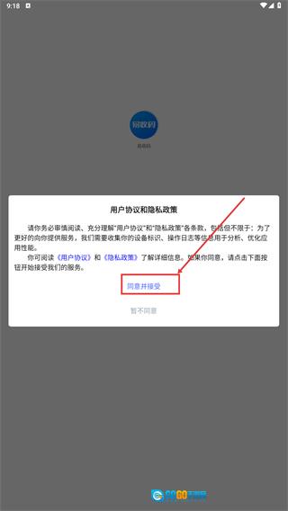 1、仔细阅读【用户协议和隐私政策提示弹窗】的内容后,点击【同意并接受按钮】即可继续操作。