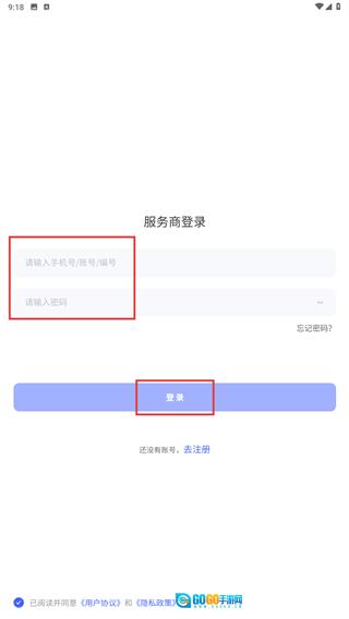 2、进入服务商登录页面,在相应的输入框中填写账号和密码,然后点击【登录】按钮。