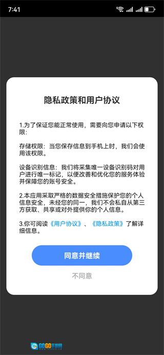 首次启动时,需要阅读并同意用户协议和隐私政策,点击确认按钮后即可进入主界面。