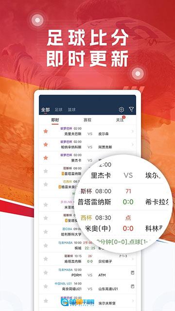 2、比分直播:实时呈现足球、篮球、网球赛事的比分并进行及时更新,同步提供现场比赛的数据直播服务。