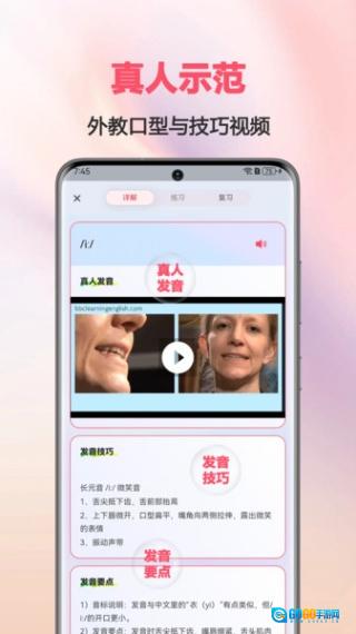 2、高清语音示范:配备专业外教录制的高清发音示范音频,发音精准且清晰,便于用户直观模仿并学习地道纯正的英语发音。