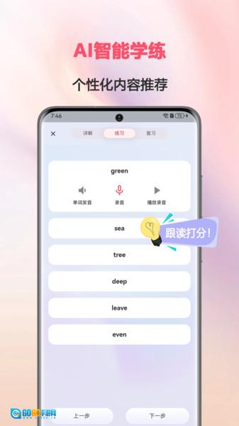 3、个性化学习路径:AI会依据用户的学习进度、发音水平以及学习目标,智能规划专属的学习路径,让每个用户都能依照最契合自身的节奏开展学习。