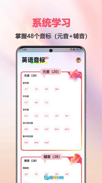 3、简洁易用的界面:运用简洁直观的操作界面,功能布局科学合理,用户能够轻松定位到需要的音标课程与学习工具,不必进行复杂操作即可开启学习之旅。