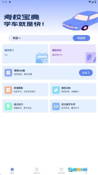 2、在首页可查看科目一与科目四的各类训练题,支持在线答题;同时,系统会把必考内容以简洁的速记形式展示出来,方便用户随时查阅。