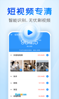 快速清理抖音、快手、淘宝这类常用软件生成的视频缓存。