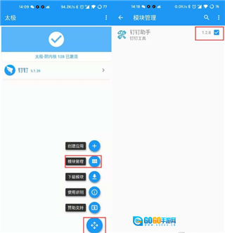6、模块管理,激活钉钉助手模块。