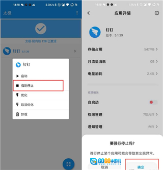 7、长按钉钉图标,强制停止。