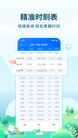 不管是想查询火车是否准点,还是想了解车次的详细信息,都能借助高旅纵横的精准时刻表功能轻松获取。这样你就能更合理地规划自己的时间,不用再担心误了火车。购票功能是高旅纵横的另一大优势。通过高旅纵横,你可以提前买票,甚至参与抢票,让你领先他人一步,实现购票自由。再也不用排队等待,只需在应用里选好你想要的车次和座位,接着完成支付就行。你就能更轻松地安排出行,不用再为买不到车票而发愁。