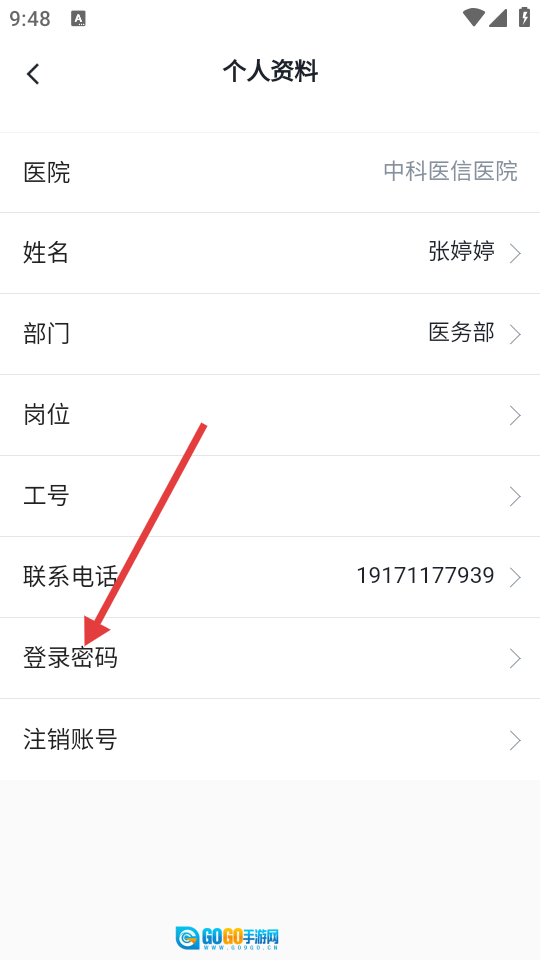 3、进入个人资料页面后,找到并点击【登录密码】选项,即可启动重置密码的流程。