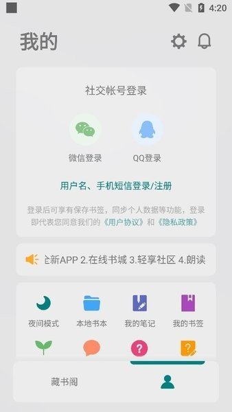 2、轻巧的阅读软件,应用内存非常小,有利于进行安装,这里还有私密空间。