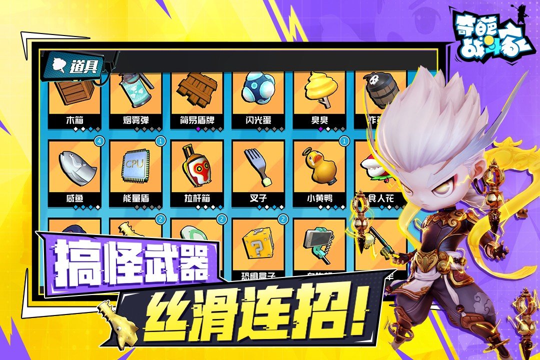 奇葩战斗家是一款趣味魔性竞技类游戏,融合了moba和io玩法的模式,多道具配合尽显花式操作,游戏支持多人联机可以和小伙伴一起玩耍,讲究配合实现团队间的默契。
