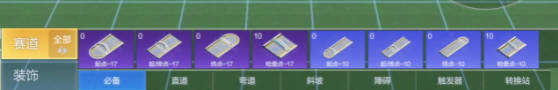 同时紫色材料和蓝色材料也有不同的地方,紫色材料的赛道要稍微宽一点,蓝色材料的赛道稍微窄一点,如果想要赛道难度高一点的话,可以多用蓝色材料,如下图: