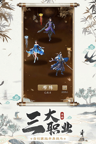 经典的三职业设定,可以在狂刀、剑客、游侠三大门派任选其一,修炼武学、打造神装、创建家族,闯出属于自己的名堂。