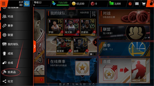 在游戏主界面拉开左侧滑动菜单栏,然后再点击如图标注的“拍卖品”按钮即可打开拍卖行界面。