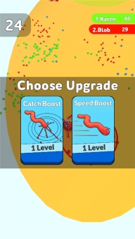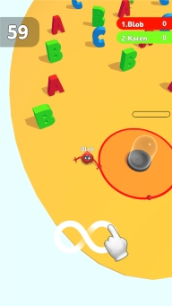 在这款游戏里,玩家将化身史莱姆,在赛道上收集字母与彩色颗粒。随着收集的持续进行,史莱姆的身体会逐渐变长。你得在保证自身安全的情况下,返回己方阵地。此后,史莱姆就能实现属性升级,你能够自主选择提升其攻击力、移动速度、收集范围,亦或是抢夺对手阵营资源的速度等,从而轻松战胜对手。