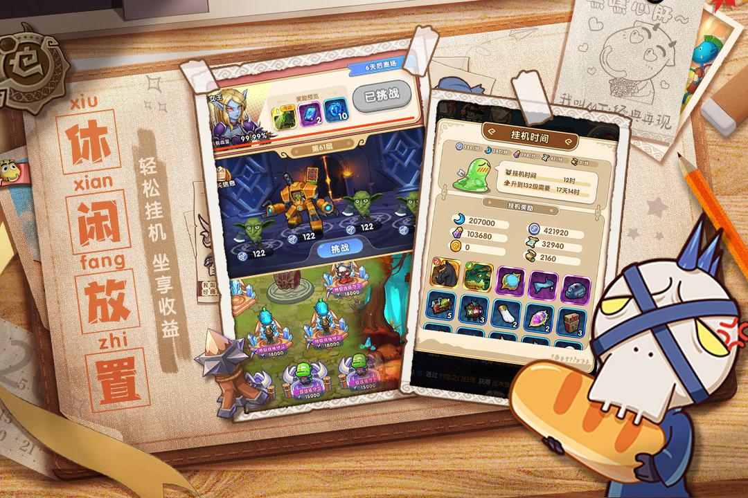 【放置挂机轻松玩不肝不氪不费时】挂机游戏千篇一律,好玩的挂机万里挑一,想玩就玩想挂就挂,无论是打怪、通关、提升技能等,都能在你零碎的小空档搞定,摆脱束缚与时间的控制,填充闲暇时间,不再被游戏绑住。