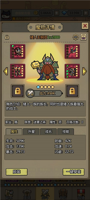 角色达到满级之后,主要玩法就是升星以及强化装备,通过这些方式逐步提升战斗力。当关卡闯过2000关,升阶石数量会大幅增加,每天获得的钻石也多到用不完,到这个阶段,你就从初入游戏的新手成长为资深大佬了。