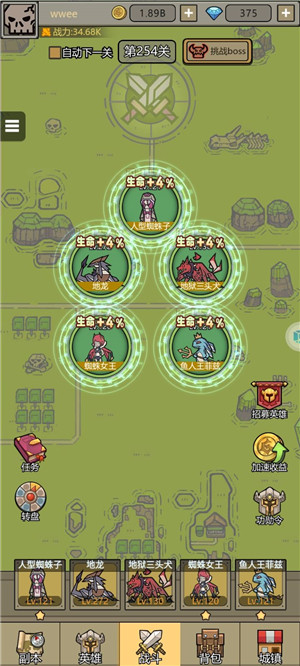 ⑤黑暗祭坛:配种中心,获得卡的成长在恶英雄的数值内随机。(获得的英雄成长通常比抽的好。是英雄升星的主要途径。)