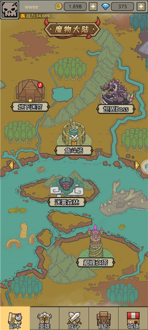 ①地下迷宫:疑似魔物大陆垃圾填埋场。前期打不了,后期没啥用。战力要求老高,给的奖励老少,别花钻石。