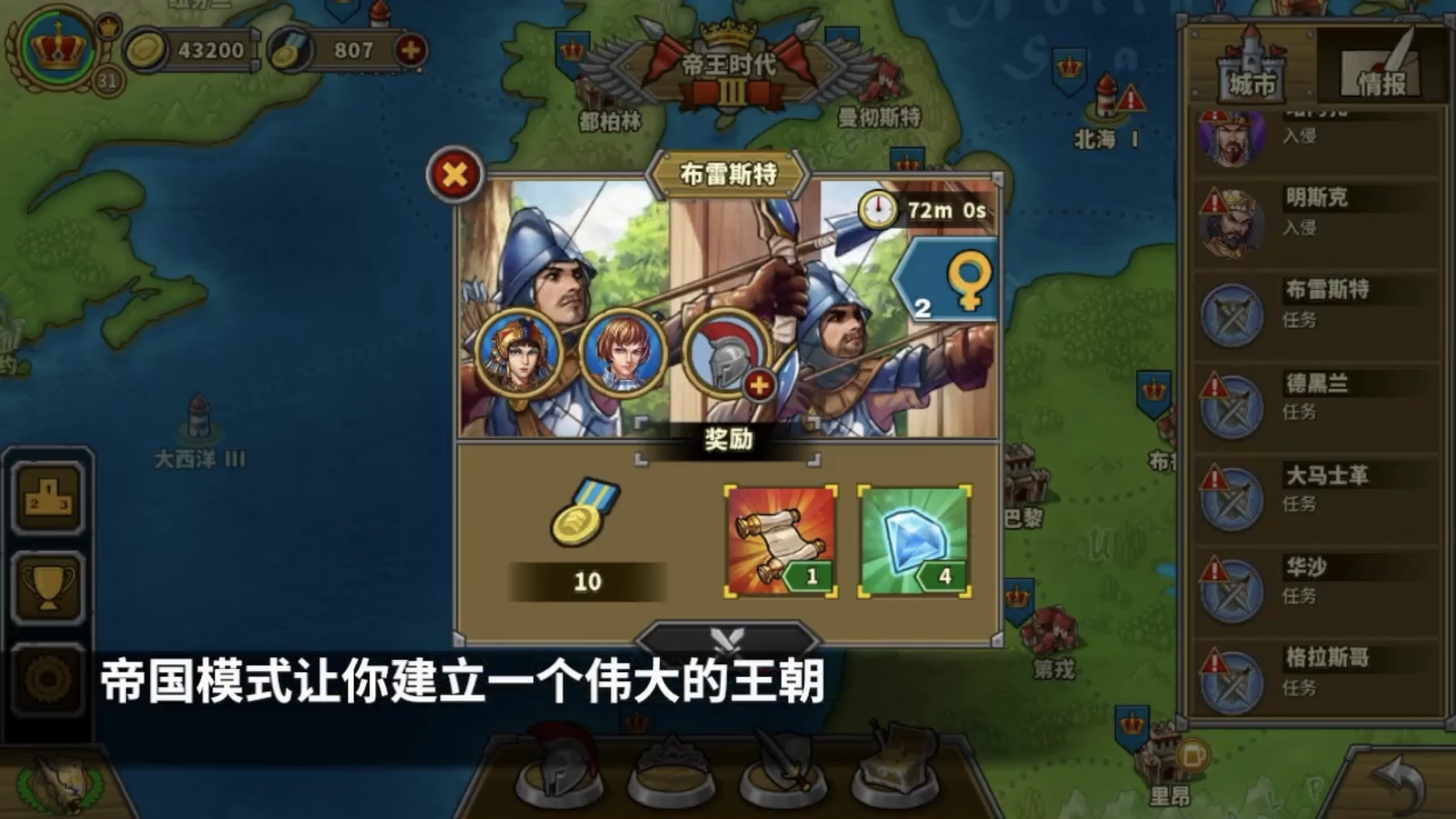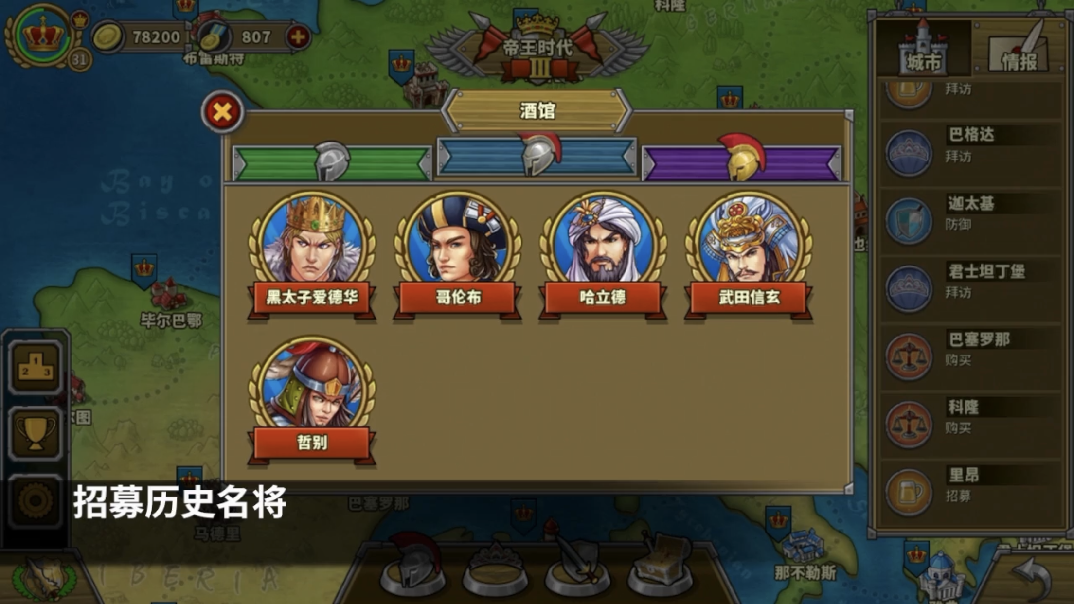 旗帜飘扬的代表是可以派出的军力。玩家一定要抓住每一回合的出兵机会,充分出兵