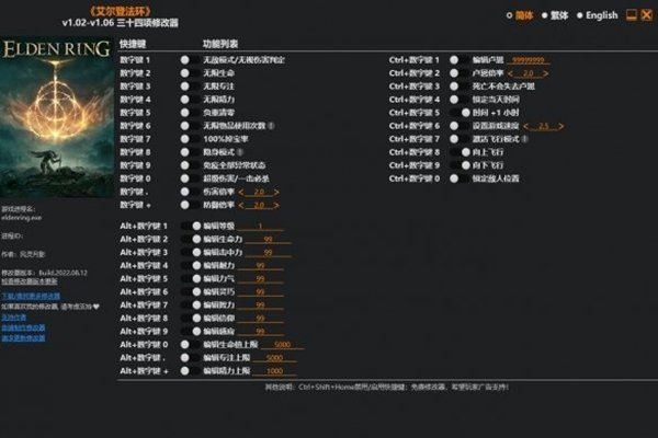 艾尔登法环修改器让玩家感受真正的游戏内容,在这里玩家将会成为一个超人版的存在,无限生命和无限精力的加持,任何危险的地方你都能前去。还有对负重的清零,等等,功能十分多样,喜欢的小伙伴,点击下载感受吧。注意会被360误报,文件十分安全。